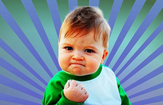 Практически сразу после размещения снимок Сэмми стал распространяться по сети Интернет с немыслимой скоростью. Матери поначалу очень не нравилась эта история, ей казалось, что подписи к этой фотографии слишком агрессивные. Сначала появилась надпись «Я тебя уделаю», потом «Я ненавижу замки из песка», и позже «Мальчик-победитель» и «Успешный ребёнок». Последние подписи ей уже нравились. Она находила снимки сына на разных ресурсах и требовала немедленно их удалить. Это был её сын и её фотография, и ей казалось, что никто не имеет права их использовать. Все её усилия по удалению фотографии были тщетны. Их убирали с одних сайтов, а на следующий день снимок появлялся на сотне других, но чаще «Успешного ребёнка» не удаляли вовсе. Это было похоже на снежный ком. И тогда Лэйни решила посмотреть на ситуацию под другим углом.