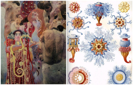 Эрнст Геккель, зоолог девятнадцатого века и сторонник дарвинизма, разработал эволюционный монизм, универсалистскую философию, которая пыталась решить проблему «механического» мира и удивительно повлияла на венское искусство, в том числе и на творчество Густава Климта.