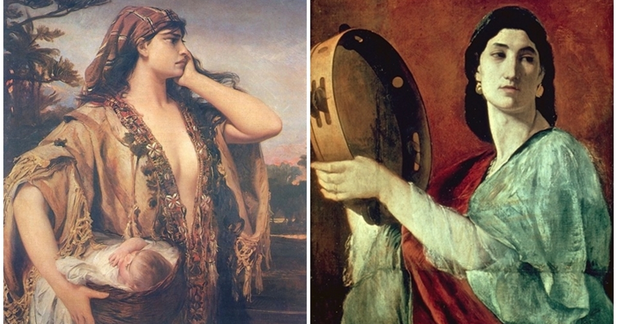 Слева направо: Танец Мириам, иллюстрация из Томичов псалтир, Болгария, XIV век. \ Танец Мириам по поводу возвращения её отца к матери, картина Ансельма Фейербаха, 1862 год.