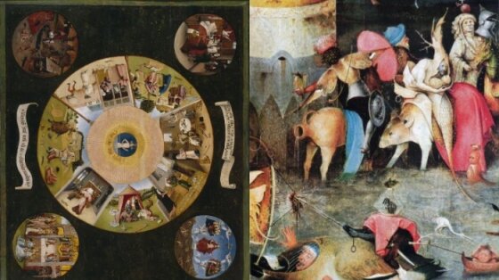 В тот период искусство справлялось с эффективным влиянием на массы. Придворный статус Иеронима только придавал ему значительности. Филипп II не только жаждал власти над вверенной ему страной, но и сам задумывался о вечном. Шедевр Босха «Семь смертных грехов» задумывался как интерьерное украшение спальни короля. Филипп II распорядился поместить картину в своих покоях в Эскориале. Разглядывая босховских грешников, монарх задумывался над собственными поступками и готовился к таинству покаяния.