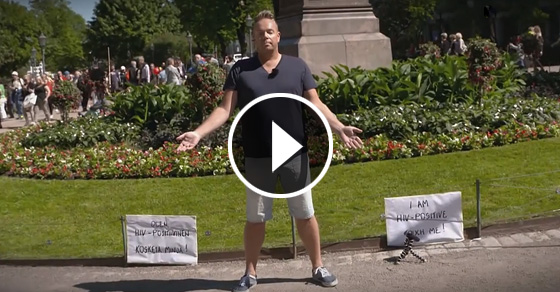 Финский парень Янне Антин решил провести смелый эксперимент, чтобы показать каково это - человеку с ВИЧ жить в современном мире. Он написал таблички на двух языках: "Я ВИЧ-инфицирован. Прикоснитесь ко мне!" и встал на одной из площадей. Реакция людей довела его до слез.