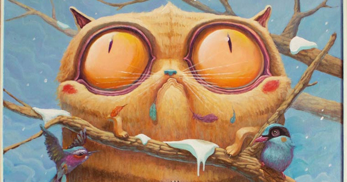 Невероятно красочные огромные картины на стенах и трогательные маленькие рисунки на срезах дерева - работы испанского иллюстратора Dulk. Его удивительные сказочные герои настолько необычны, что стиль художника узнается моментально. Голодный кот, розовые слоны, слепой медведь и носорог с чайником - фантазии Dulk просто нет предела!
