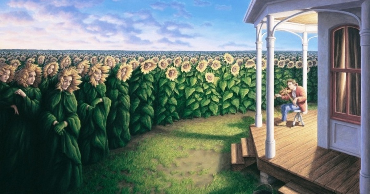 «Сотни иллюзий», - то, что приходит на ум, когда с нескрываемым интересом рассматриваешь работы современного художника Роба Гонсалвеса (Rob Gonsalves), который создаёт сюрреалистические картины с элементами магического реализма. В его работах оживают такие сюжеты, где полным-полно каких-то метаморфоз и всевозможных объектов, перетекающих из одной ипостаси в другую.