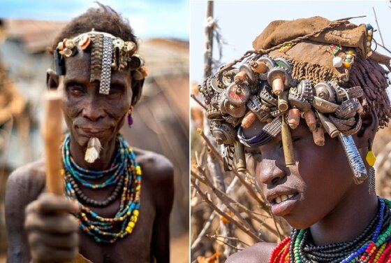 Свои прически, которые бывают весьма затейливы, с множеством косичек, местные представительницы прекрасного пола украшают столь странными предметами, что у современных европейцев это просто вызывает смех. На головах у женщин можно увидеть металлические и пластиковые крышки от бутылок, крышки от картриджей, пластмассовые пуговицы, брелоки, старые ключи и даже пластиковые корпуса от старых кнопочных мобильников. В общем, всё, что европеец отправил бы в мусорный бак, местные модницы считают очень даже эффектными аксессуарами.