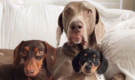 Харлоу (порода веймаранер) некогда дружил с таксой Сейдж, но когда та умерла, он так заскучал, что хозяевам буквально пришлось устраивать конкурс среди сотен претендентов на роль нового друга Харлоу. В конце концов, нашлась Индиана. Маленькая такса, которая стала лучшим другом огромной собаке. А затем появилась еще и Молния Риз. Судя по имени, можно догадаться, что Риз не самая спокойная собака в мире. Но главное, что друзьям хорошо вместе.