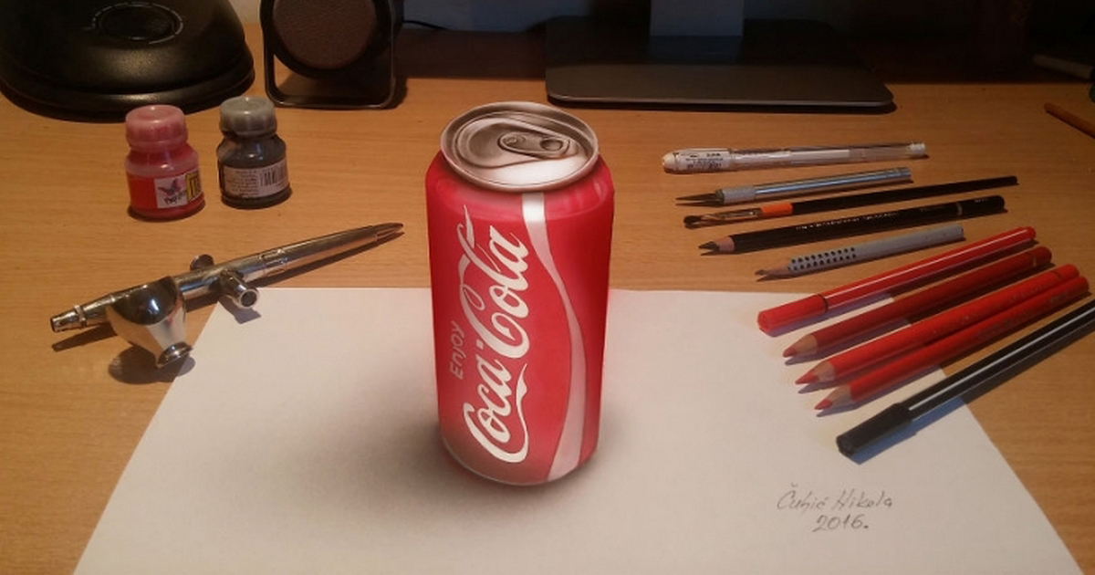 Правду говорят, что талантливые люди – талантливы от рождения. Взять хотя бы сербского художника-самоучку Николу Чулича (Nikola Čuljić), рисующего потрясающие трёхмерные изображения, которые так и хочется потрогать рукой, ведь в голове никак не укладывается тот факт, что стоящие на столе Converse или пара женских туфель ненастоящие, а всего лишь плод фантазии автора, созданный при помощи маркеров, карандашей и пастели.