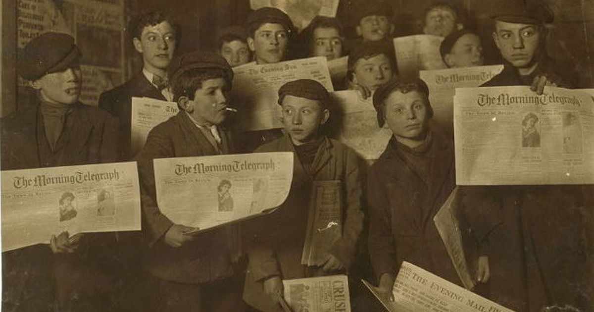 Юный разносчик газет. США, Нью-Йорк, 1915 год.