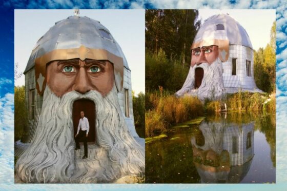 Арт-объект представляет собой дом высотой 11 метров, построенный в виде головы Святогора – богатыря из Пушкинской поэмы «Руслан и Людмила». Автор арт-объекта, житель Миасса Рамис Себгатулин, строил свое детище пять лет. Н гигантскую голову ушло 12 тонн цемента и 3 тонны металла. Возводил ее умелец на собственные деньги. Завершение строительства было приурочено к 200-летиею знаменитой сказки великого поэта. Внутри арт-объекта есть другие тематические персонажи – Кот Учёный, Леший, Русалка, в доме-голове даже есть музей Пушкина.