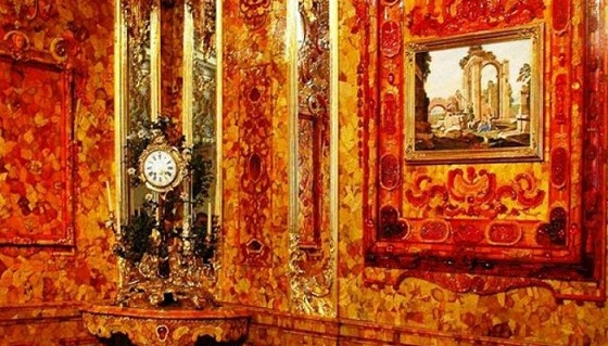 Знаменитая Янтарная комната брала свое начало не с правления Петра I в России, а во времена Фридриха I в Пруссии. Король поддержал желание его жены Софии-Шарлотты сделать кабинет, украшенный янтарем. Но, в связи со смертью августейшей особы, а затем и ее супруга, окончание работ они так и не увидели. Их сын Фридрих-Вильгельм I посчитал затею с кабинетом расточительством и передал неоконченные полотна из янтаря Петру I. В 1743 году уже при Елизавете Петровне они были украшением Зимнего дворца. Спустя 10 лет полотна переместили в Екатерининский дворец и дополнили новыми фрагментами. Как известно, во время Второй мировой войны Янтарная комната была похищена немцами и выставлялась в Кенигсберге. К концу войны следы Янтарной комнаты были потеряны.
