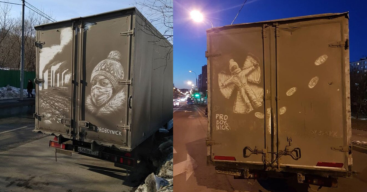 Московские грязные грузовики стали холстами для сюрреалистических рисунков