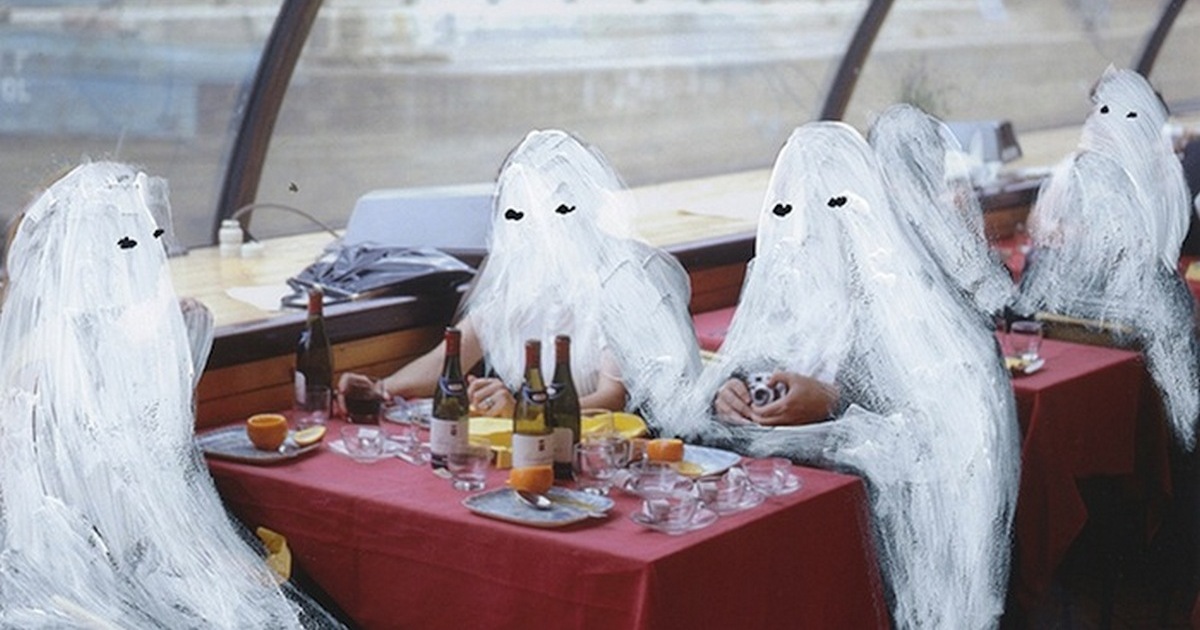 Американская художница Анжела Дин (Angela Deane) разыскивает старые фотографии незнакомых людей, визуальными средствами воплощая метафору «призраки прошлого». Она закрашивает человеческие фигуры на снимках белой краской, двумя черными мазками обозначает глаза, и безымянные, но вполне определенные люди, превращаются в привидений в традиционной для западной (и особенно американской) культуры символической интерпретации — в бесформенные фигуры, скрытые под плотным белым покровом.
