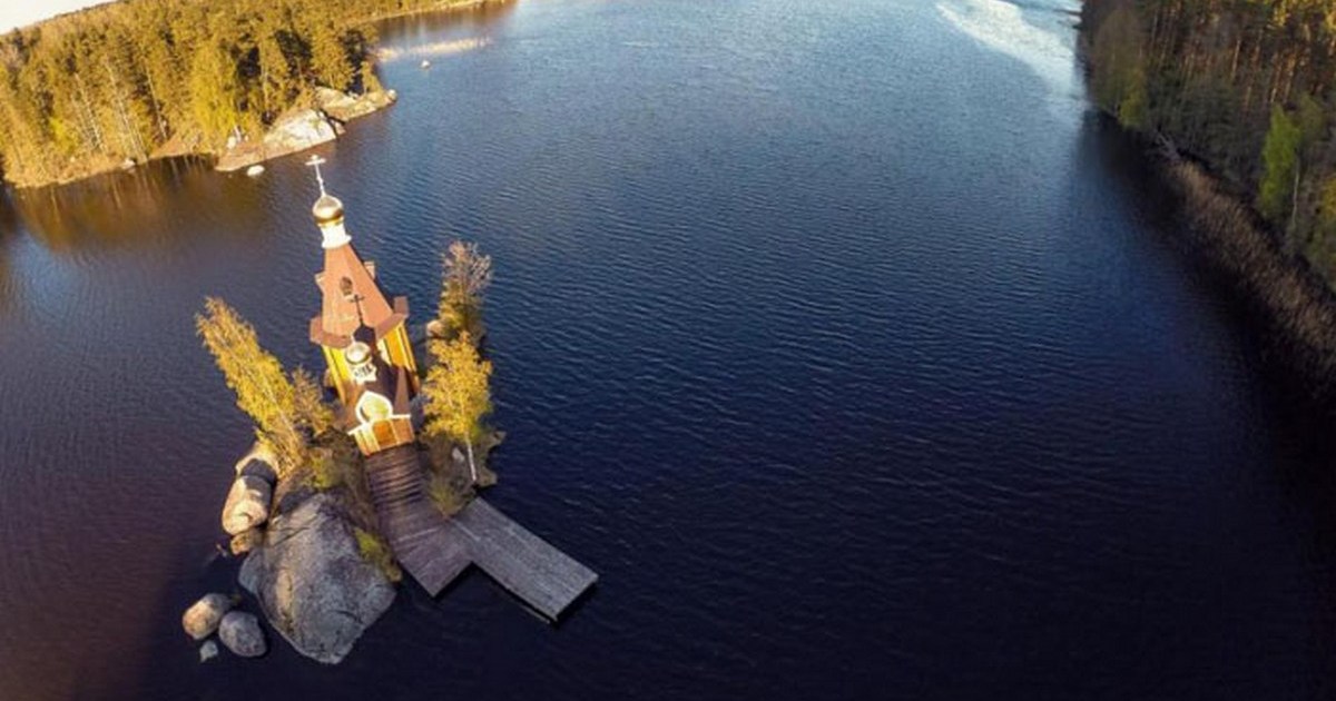 Храм Андрея Первозванного находится в Ленинградской области на реке Вуокса, недалеко от финской границы. Это одна из многих церквей, построенных на острове, однако единственная в мире, которая стоит на монолитной скале посреди воды, и этот факт позволил внести церковь в Книгу рекордов Гиннеса.