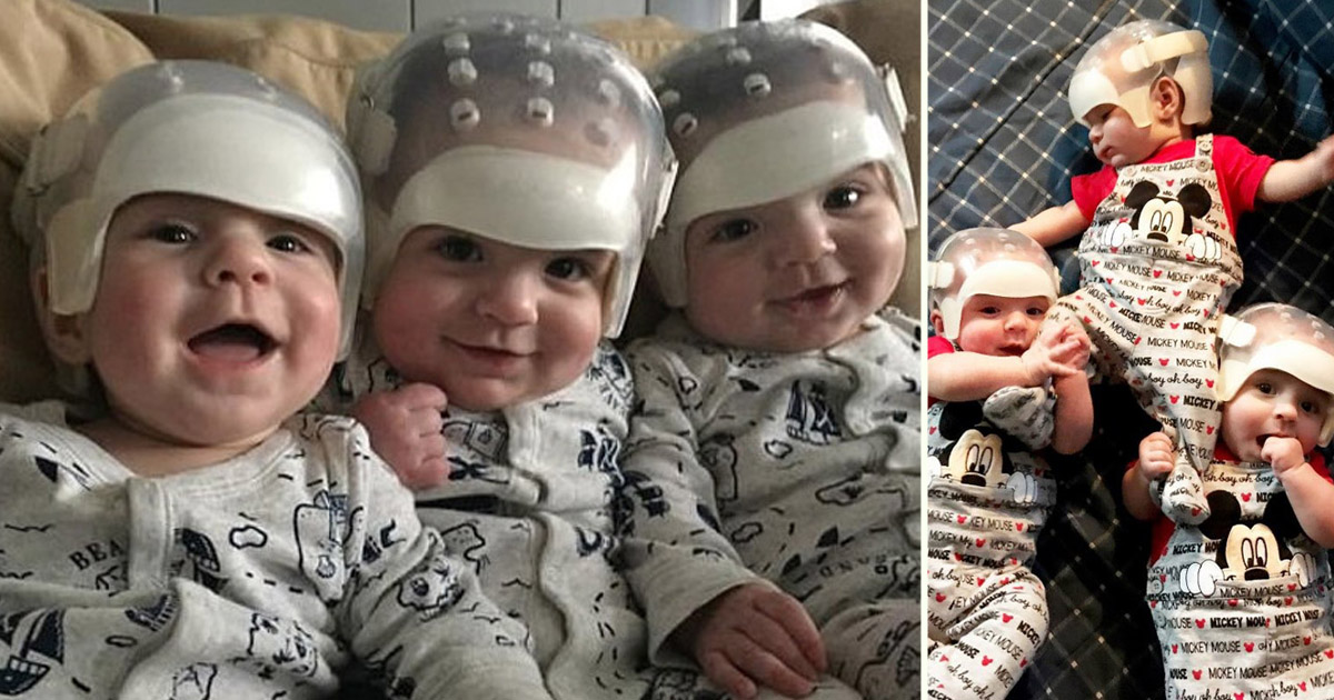 После операции детишкам надели специальные шлемы, которые защищают голову малышей и придают их черепам правильную форму. Такой шлем легкий, но при этом очень прочный, он позволяет коже малышей дышать, но при этом его надо носить минимум 23 часа в сутки. "Ну да, некоторое время детям пришлось привыкать к шлемам, но сейчас уже нет никаких проблем ни когда я их снимаю, ни когда надеваю их обратно," - говорит мама Эми.