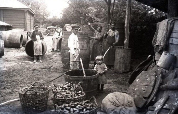 Писатель Иван Шмелев описывал, как происходило соление огурцов. На улицу выкатывали кадки, кто одну, а кто и четыре, но в основном большие, маленькие были ни к чему. На весь двор дым столбом, потому что их нужно было выскоблить, отпарить, чтобы новые плоды заложить и рассолом залить. Русский народ старался огурчиком запастись, ведь без него не представляли ни обычный обед, ни праздничное застолье. На дворе, когда шел процесс заготовки, было шумно – кто-то бочки готовит, в чанах вода закипает, а в воздухе стоит аромат специй и трав. Режут укроп и хрен, готовят лист черной смородины и дуба – для крепости и духа.