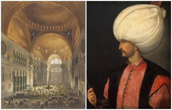 Одним из величайших примеров того, как Восток встретился с Западом в Константинополе, было превращение собора Святой Софии в мечеть. Церковь была построена в 537 году византийским императором Юстинианом I, и в течение почти тысячи лет здание было самым большим собором в мире. Считается, что Мехмед II отправился прямо в собор Святой Софии после въезда в Константинополь, чтобы совершить свою первую исламскую молитву. Затем купольная церковь была превращена в мечеть, и к зданию были пристроены четыре минарета. До строительства Голубой мечети в нескольких сотнях метров от отеля в XVII веке собор Святой Софии служил главной мечетью Стамбула.