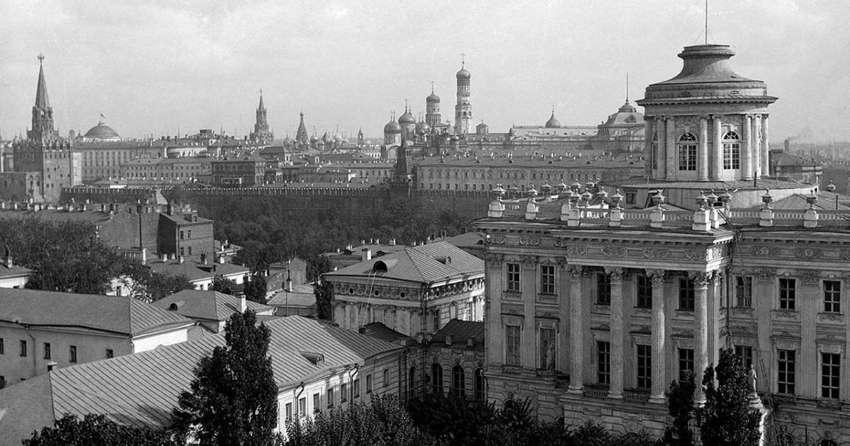 Панорама из дома №8 по улице Знаменка с видом на Пашков дом. Фото: William Osgood Field.