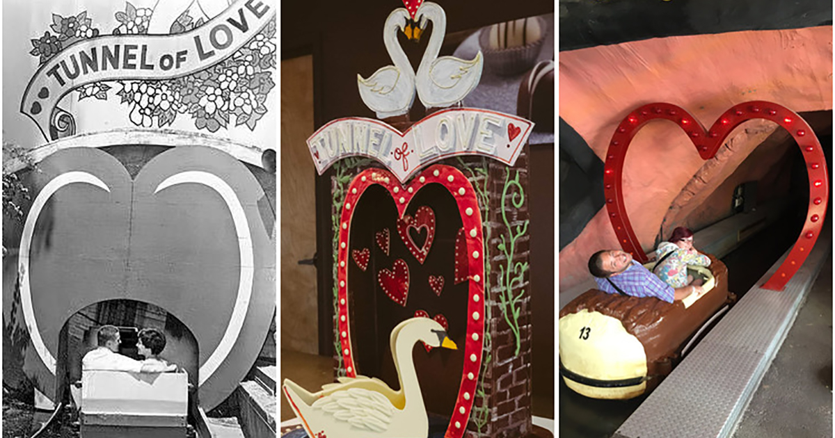 Аттракцион «Туннель любви» произошёл от аттракционов «Старая мельница», которые доставляли пассажиров через каменную мельницу.