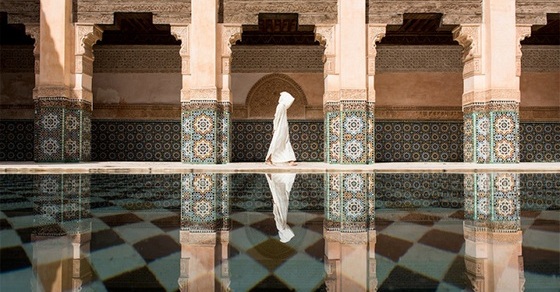Это самое спокойное и тихое место в бывшей коранической школе в Марракеше. Фотограф ждал идеального кадра несколько часов. Фотограф Такаши Накагава (Takashi Nakagawa).