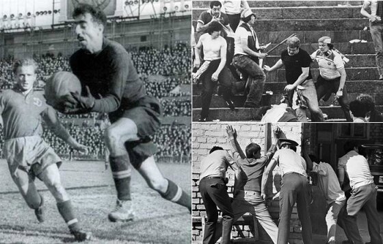 Еще один злополучный матч состоялся в сентябре 1956-го на киевском стадионе им. Н.С. Хрущева в присутствии 60 тысяч зрителей. Тогда силами мерялись хозяева из «Динамо» и московский «Торпедо». Игра завершилась в пользу гостей при счете 1:0, но решение судей вызвало зрительский гнев. Дело в том, что трактовка результатов действительно оказалась неоднозначной, и справедливости ради стоит отметить, что киевляне имели основания возмутиться. После непреднамеренного нарушения правил динамовцем судьи замешкались, не согласовав свои действия. В итоге, москвичи забили гол в тот момент, когда один из арбитров остановил игру и из борьбы выключились игроки встречающей команды. Трибуны ревели, требуя признать недействительным досадный гол. Судья стоял на своем, а взбешенные фанаты бросились на поле.