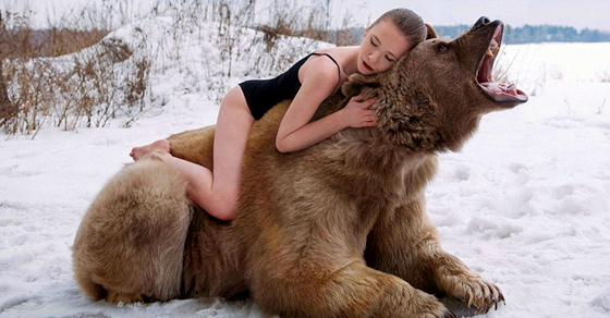 Очаровательные, но в то же время повергающие в шок фотографии, на которых запечатлены полуобнаженные модели, обычные люди и даже дети рядом с огромным 650-килограмовым медведем, буквально взорвали интернет. Неужели никто не подумал, что этот зверь опасен и может спокойно откусить голову любой из моделей? Неужели эти странные русские действительно вот так запросто могут усмирять дикое животное?