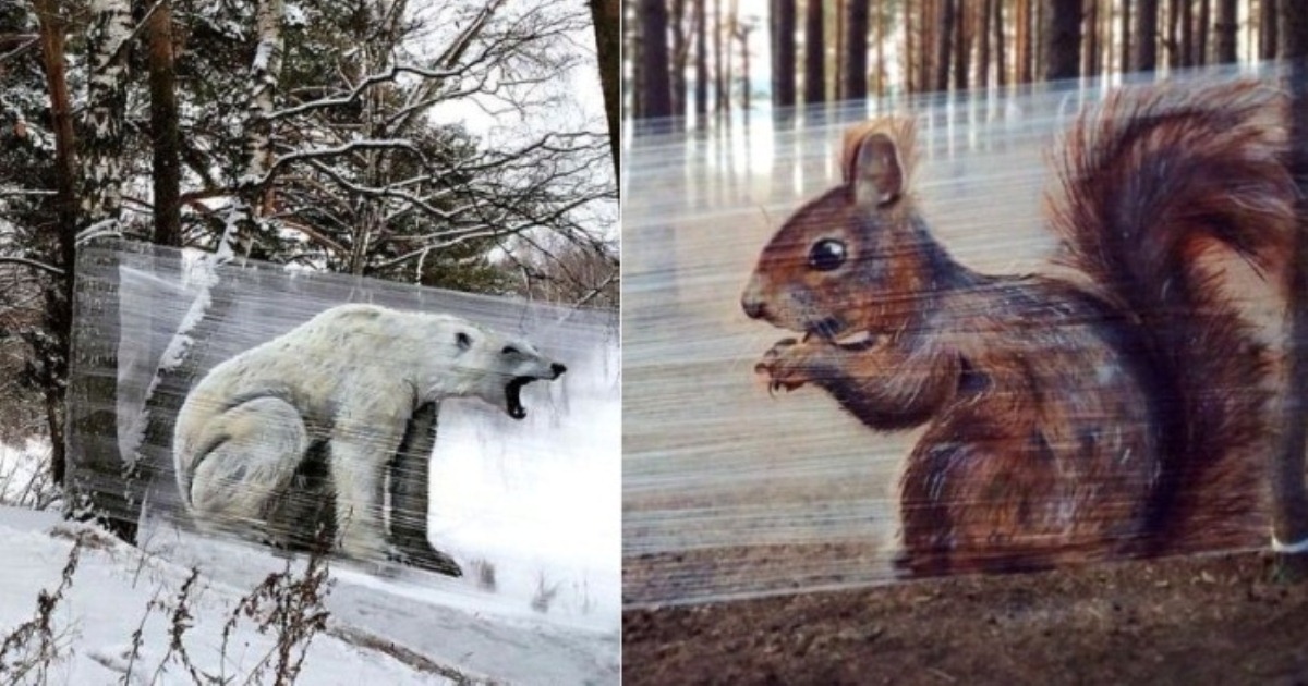 Гигантские животные в лесу: Оригинальный стрит-арт от московского художника