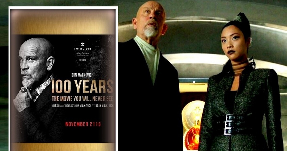 В первом тизере мы наблюдаем эпичное погружение сосуда Louis XIII в сейф и начало отсчета на таймере в 100 лет. В этой версии будущего города стали больше похожи на джунгли. Джон Малкович со своей прекрасной спутницей приближаются к сейфу в момент, когда цифры на таймере "бегут" к нулю. Сейф открываются, однако на пороге вдруг появляется таинственный незнакомец...
