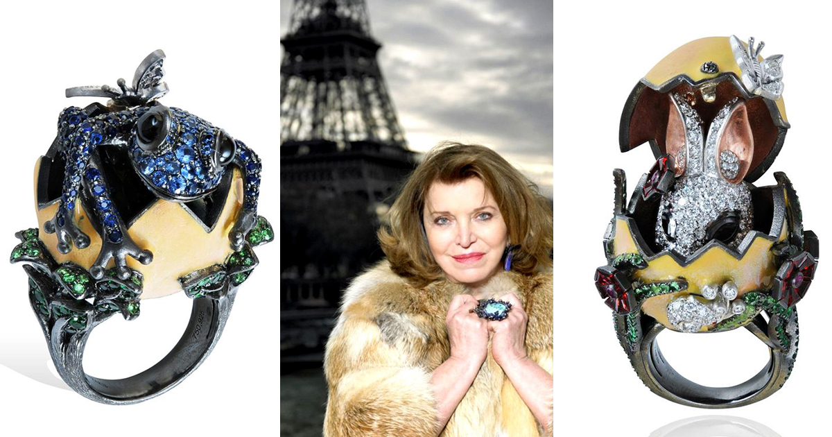 Коллекция Procreation Haute Couture - это нечто особенное Каждое кольцо - это треснувшее эмалевое яйцо, из которого вот-вот должно появиться маленькое драгоценное существо. Коллекция Procreation Haute Couture - это нечто особенное Каждое кольцо - это треснувшее эмалевое яйцо, из которого вот-вот должно появиться маленькое драгоценное существо. Из яиц на её кольцах вылупляются не только животные, которые действительно прорываются в этот мир из скорлупы – птенцы, черепахи, крокодилы и ящерицы, то даже лягушка и сахарный кролик.