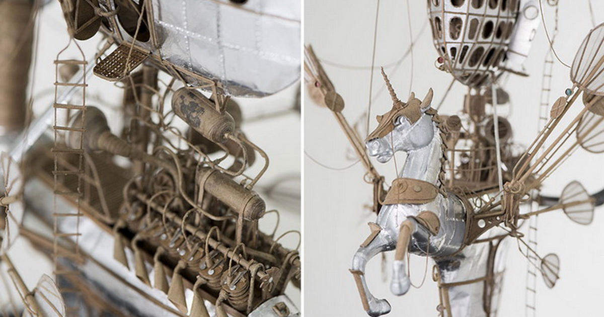 Дирижабли и аэропланы в исполнении Йеруна ван Кестерна покорят любителей стимпанка. Созданные из картона, фольги и клея, они выглядят так, словно материализовались из романов Жюля Верна и Герберта Уэллса. Прекрасные фантазии, вдохновленные романтическими идеями XIX века!
