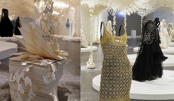 Один из выдающихся модных кутюрье современности Карл Лагерфельд недавно отметил 50-летний юбилей своей творческой деятельности. К этому событию была приурочена выставка с его лучшими работами. Достойным обрамлением шедевров дизайнера стала бумажная инсталляция, напоминающая воздушные своды сказочного дворца.