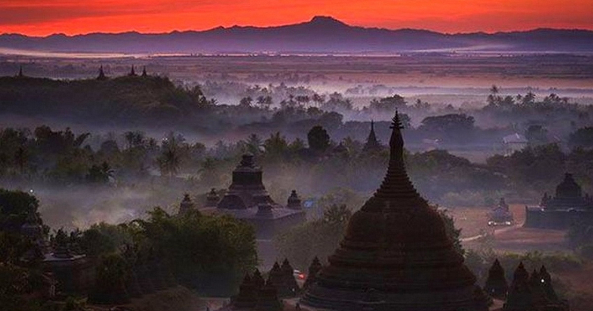 Рассвет, наблюдаемый с пагоды Шветунг. | Фото: amusingplanet.com.