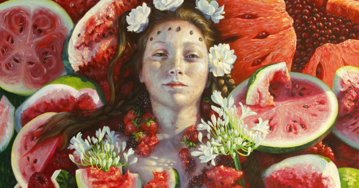 Современный художник Алонса Гевара (Alonsa Guevara) создаёт поистине сочные и аппетитные картины, глядя на которые тут же вспоминаются жаркие дни лета, пестрящие изобилием фруктов, ягод, овощей и как бы парадоксально это не звучало – очаровательных девушек, гармонично застывших среди всего этого великолепия…