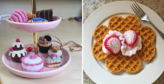 Больше всего женщине нравится вязать торты и другие красивые десерты. Она поясняет, что, провязывая крючком эстетически приятные продукты, она может многократно наслаждаться ими без чувства вины за съеденные калории.