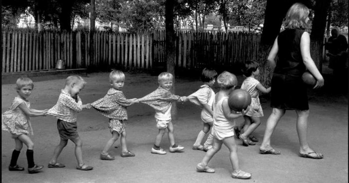 Прогулка маленьких детей в детском саду на Кубани. СССР, 1966 год.