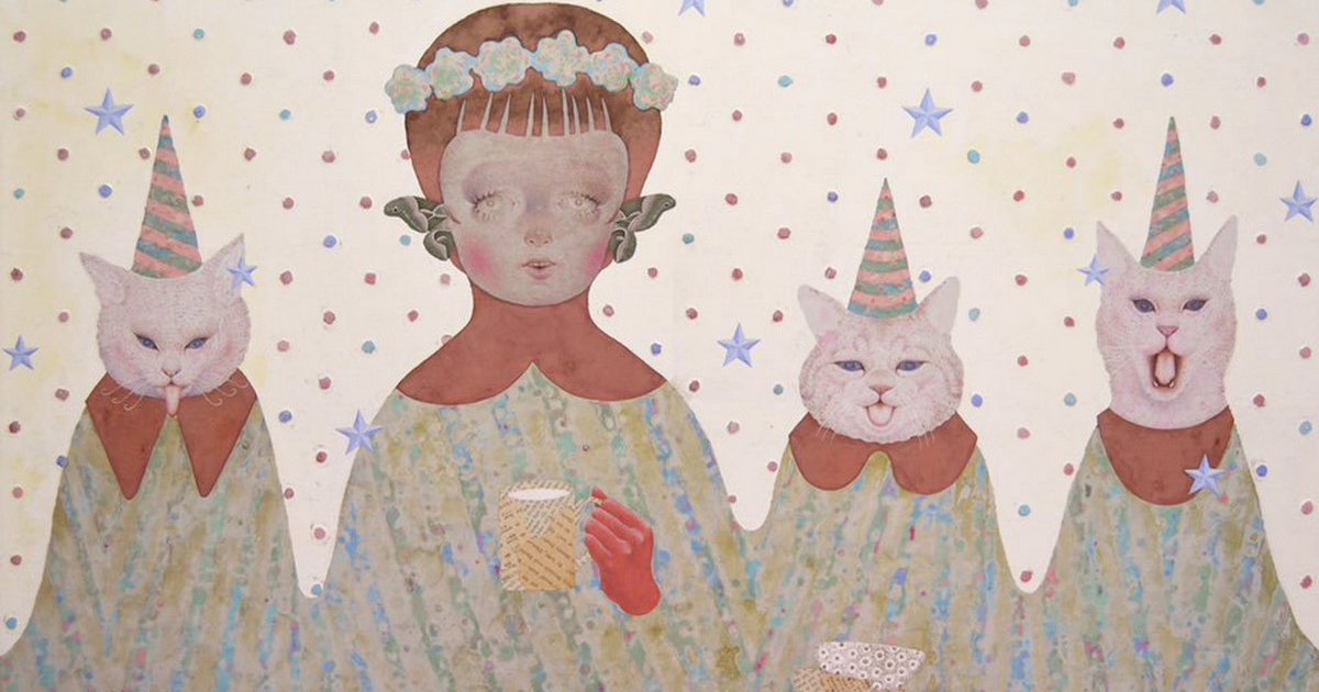 В детские годы практически каждый из нас любил сказки и зачитываясь увлекательными историями, свято верил в драконов, ведьм, добрых фей, принцев и принцесс, гномов и прочих дивных существ, обитающих на ирреальных просторах, придуманных писателем. Эми Адачи (Emi Adachi) как и большинство детей не была исключением. Да вот только теперь, вместо чтения, она «пишет» свои визуальные рассказы, в которых сочетает «старомодную» японскую палитру цветов с каким-то определённо философскими мотивами, где коты в колпаках и девочки на курьих ножках полностью погружены в себя и свои мысли.