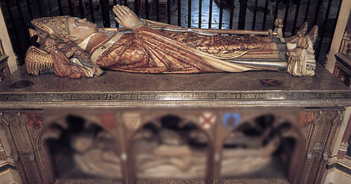 Как правило, гробницы знатных персон - королей и королев, рыцарей, архиепископов, богатых вельмож - украшали двухъярусными скульптурами. Они являлись яркой аллегорией перехода земной славы в бренность тела.