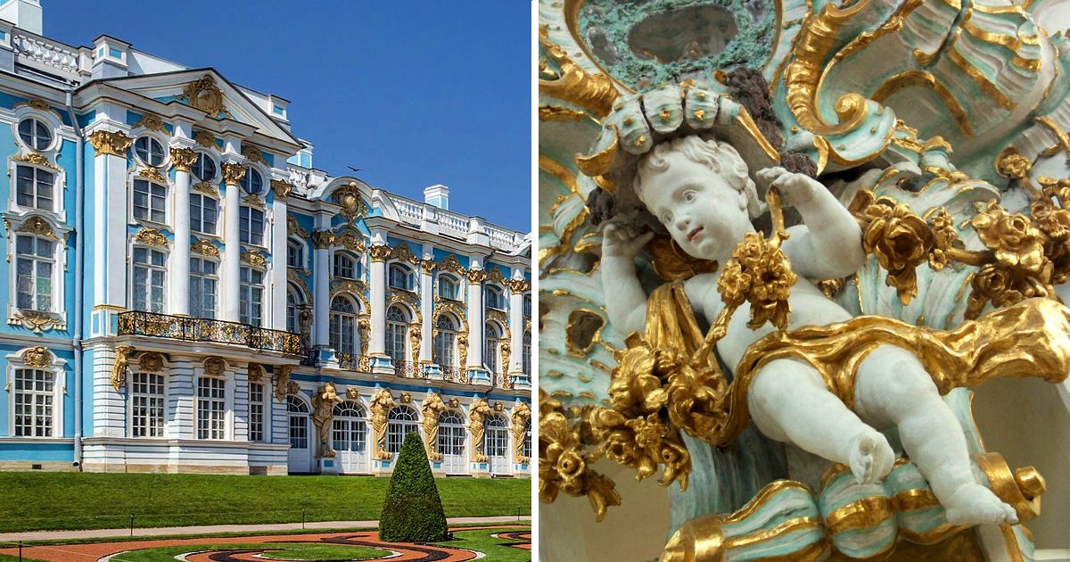 В 1717 году в Царском Селе под руководством Бартоломео Франческо Растрелли начали строительство дворца для императрицы Екатерины I, который получился совсем небольшим. А уже при Елизавете Петровне дворец принял нынешний облик. Теперь это была 325-метровая постройка в стиле русского барокко. На отделку ее фасада и статуй ушло более 100 килограмм золота, а интерьеры украсила дорогая лепнина в стиле рококо.