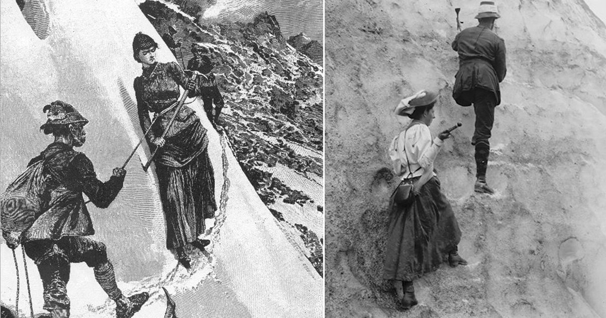 Сейчас сложно представить, через что пришлось пройти женщинам, которые отвоевывали свое право жить полноценно: путешествовать, заниматься спортом, иметь увлечения. Практически все виды активностей были рассчитаны на мужчин, так что женщинам и в горы приходилось подниматься в юбках и без необходимого снаряжения.