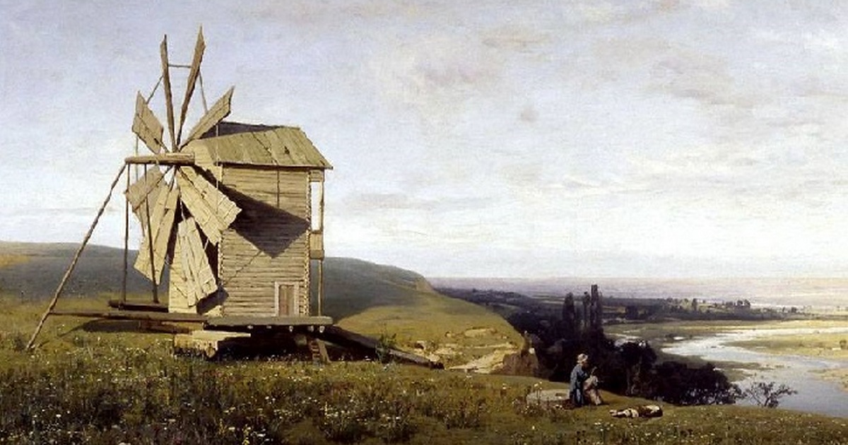 «Украинский пейзаж с ветряной мельницей». (1882 год). Художник: Владимир Орловский.