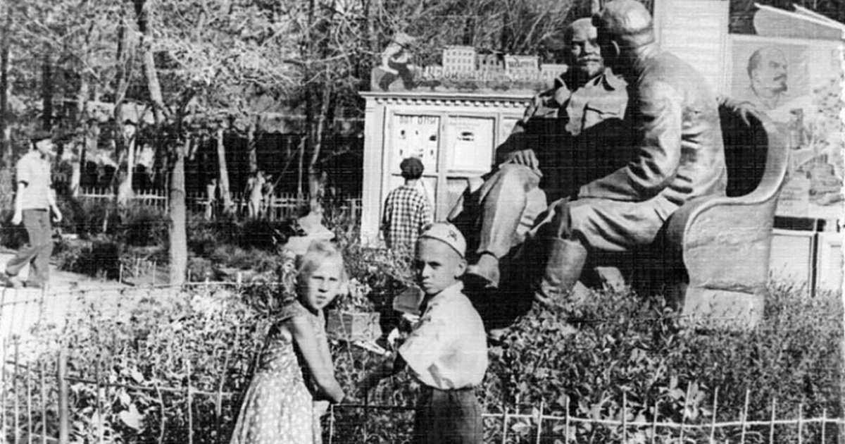 4. Дети у памятника вождям