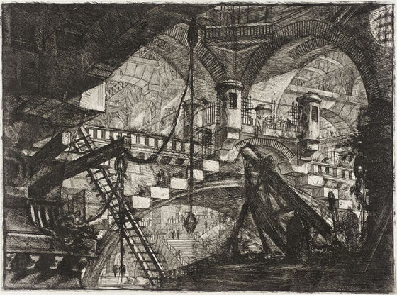 На пороге своего тридцатилетия, а затем и сорокалетия, Пиранези создал драматичную серию офортов под названием «Темницы». Сегодня это самая известная часть его творчества. Жуткие, мрачные, давящие интерьеры пыточных камер, драматичные контрасты света и тени, нагромождения лестниц, ведущих в неизведанное… Перерабатывая офорты спустя десять лет после первой публикации, Пиранези населил их крошечными фигурками тюремщиков и заключенных. Есть версия, что таким образом он отреагировал на жестокие казни и пытки, парадоксальным образом существовавшие в век европейского Просвещения. Также бытует мнение, что ирреальность темниц Пиранези – это отражение клаустрофобных ночных кошмаров. Впоследствии их будут сравнивать с романами Кафки.