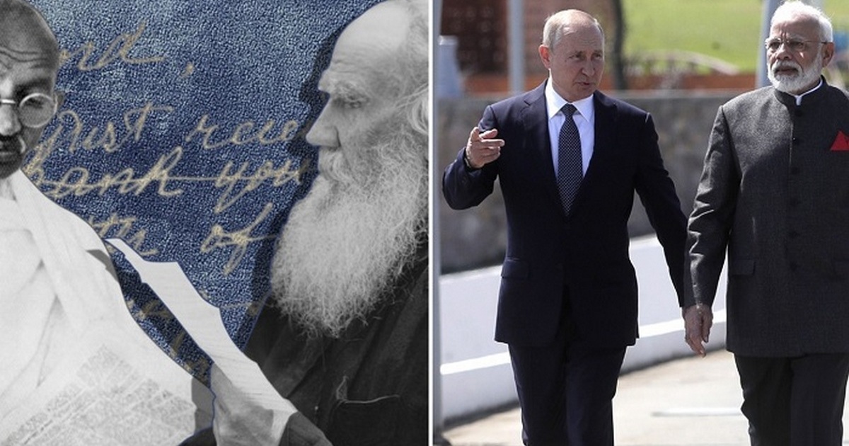 Русский классик Лев Толстой был известен еще и как мыслитель, основавший религиозно-нравственное течение — толстовство. Последователи этого философского направления встречались по всему миру. Среди приверженцев идей ненасилия, любви и нравственного совершенствования был и Махатма Ганди. В России той эпохи считалось нездоровым отказаться от оружия, мяса, алкоголя и табака. А вот в Индии таким правилам традиционно следовали от мала до велика. Именно эти нравственные позиции и превратились в предмет продолжительной переписки мыслителей. Лично Толстой и Ганди так и не встречались, но содержание их писем свидетельствует о большом влиянии писателя из России на взгляды духовного лидера Индии.