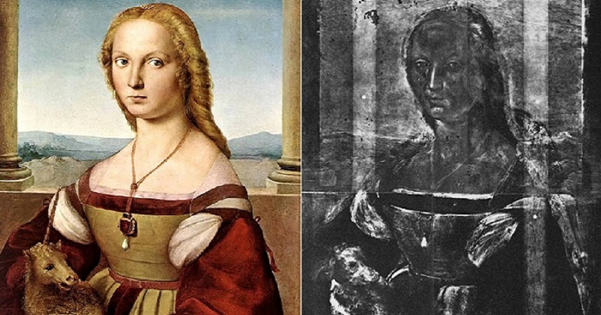Не менее интересна история картины Рафаэля «Дама с единорогом». Художник написал ее в 1506 году. Изначально это был портрет девушки, держащей на руках маленькую собачку. Уже после смерти художника собачку «превратили» в единорога. Более того, картину стали именовать «Святая Екатерина Александрийская». Плечи девушки «накрыли» плащом и дорисовали атрибуты мученицы.