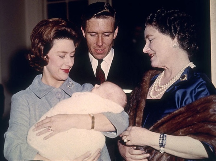 Принцесса Маргарет с первенцем на руках. Рядом с ней- Энтони и Королева-мать. / Фото: Getty Images
