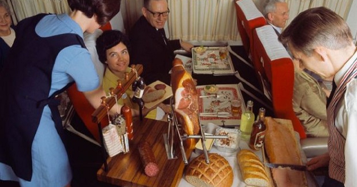 Полвека назад билеты на самолеты стоили весьма недешево, поэтому отправиться в путешествие по воздуху могли позволить себе далеко не все. Но, глядя на эти снимки, становится ясно, что в стоимость билетов входил не только перелет, но и высококачественное ресторанное обслуживание.