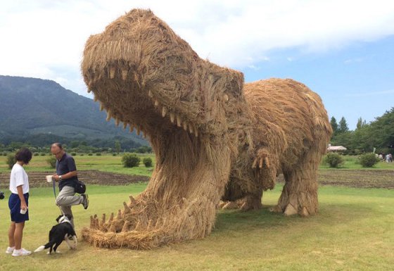 Сентябрь для сельских районов Японии ознаменовывается двумя событиями: фермеры собирают урожай риса, а остающиеся груды соломы используются для того, чтобы сделать из них экстраординарные произведения современного искусства. Так в парке Uwasekigata посреди поля уже возвышаются огромные соломенные динозавры, насекомые, змеи.