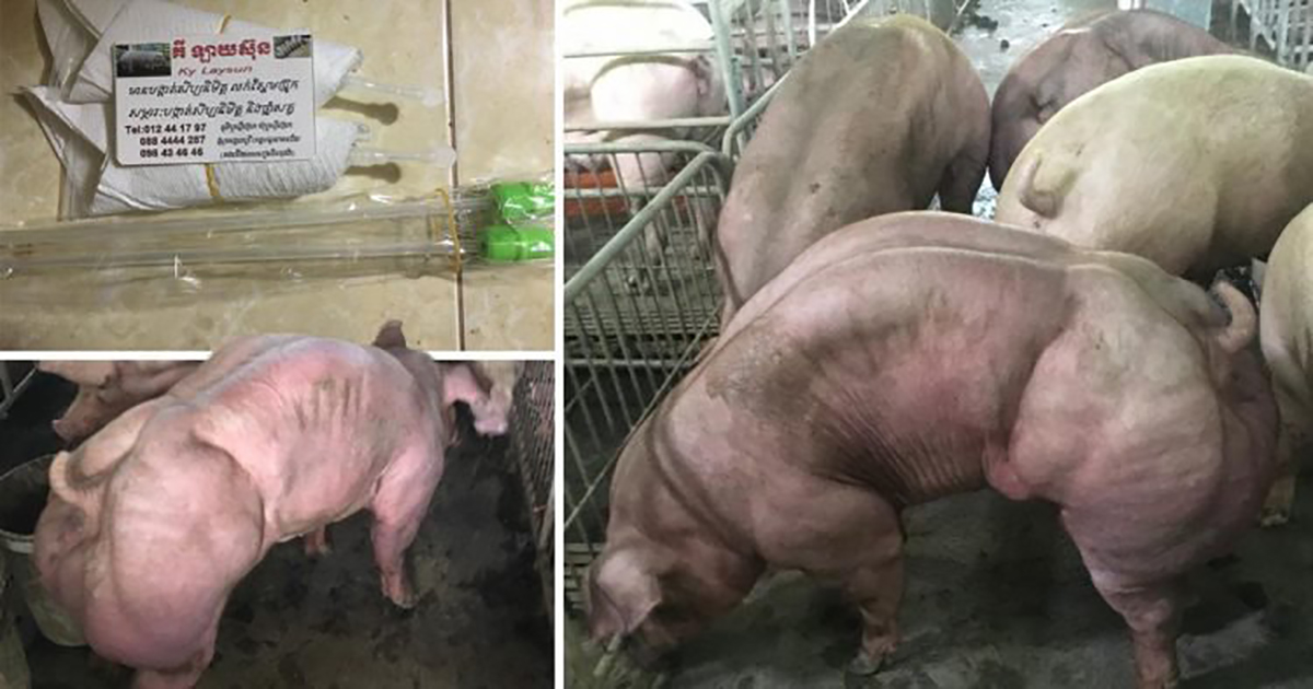 Свинок, которые выглядят, как накачанные розовые Халки с пятачком, выращиваются в одной из провинций Камбоджи. Страница этой компании в Facebook пестрит фотографиями животных, которые мало похожи на тех хрюшек, которых люди привыкли видеть на обычных фермах, и потому на них сыпятся обвинения в использовании гормонов, стероидов и генной модификации животных.