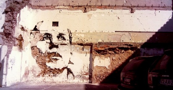 его портреты, выбитые на стенах. Благодаря сочетанию контраста побелки с цветом кирпичей, рельефности картины и неоспоримого таланта художника, персонажи Vhils оживают.