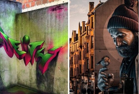 Эти направления искусства похожи, но одновременно они разные. Граффити – это уличные надписи, выполненные в определенном стиле. А стрит-арт – это нанесение уличных рисунков. Согласно историческим фактам, эти два направления получили свое развитие еще в древности, когда появились наскальные рисунки и надписи. Однако пик популярности и развития получили несколько позже, начиная с 1920 года и дальше. Сейчас рисовать на стенах пытаются многие. Большой известности в мире смогли добиться такие художники, как Бэнкси, Арон де Ла Круз, Ос Жемеос, ОакОак и другие.