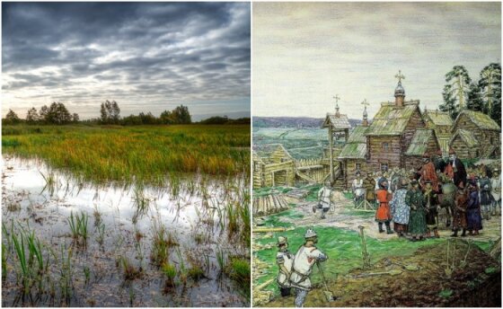 Петру I уже больше трех веков пеняют за «странный» выбор места для будущей столицы (выбор этот, на самом деле, вовсе не был так уж нелогичен при ближайшем рассмотрении). Но если взять историю Москвы, которая появилась уж точно не в результате чьей-то политической воли, нетрудно заметить, что зарождалось это селение в не менее топком месте. Разумеется, Кремль строили на холме, но земля в непосредственной близости от него, на правом берегу реки Москвы, представляла собой именно болото.