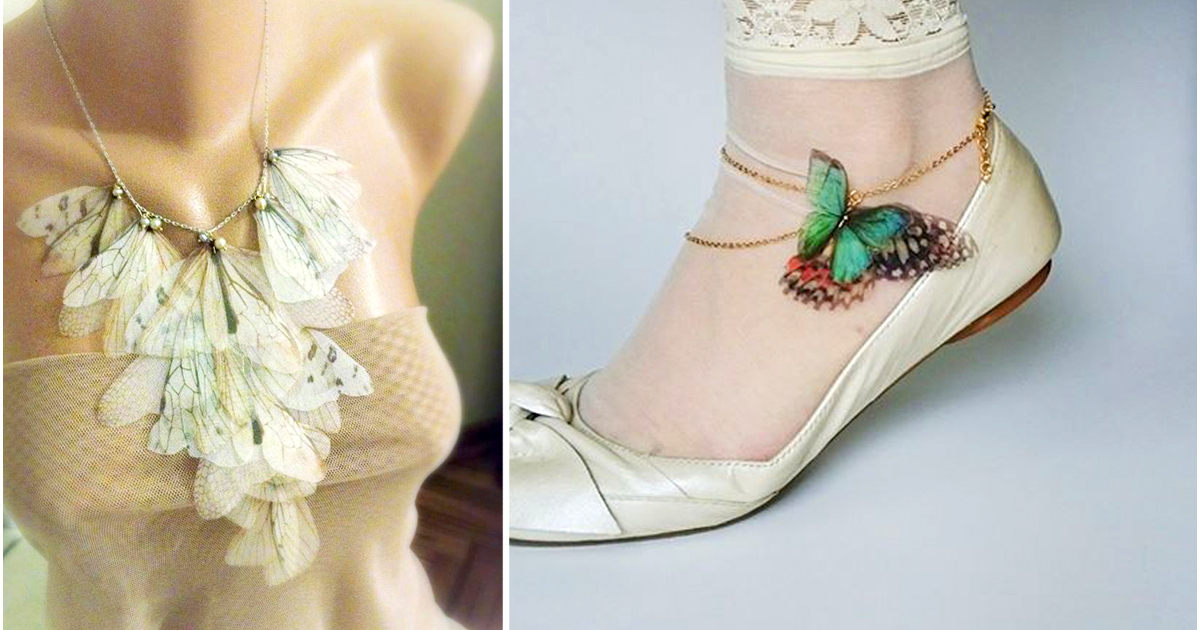 Удивительные украшения из крыльев бабочек.